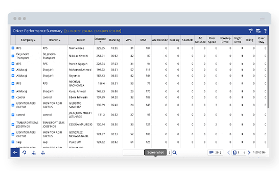Using alerts and data collected from the fleet, driving behaviour of each driver is analysed. Reports of driving performance, RAG score, driver activity and driver’s work hours are available for analysing the driving behaviour.