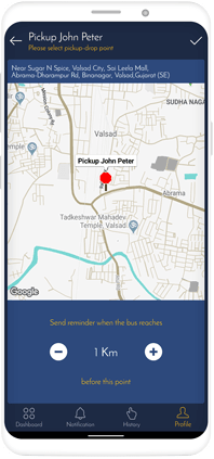 Parents will be provided with the location points from which the school bus will commute on a daily basis. If they want to change the pick and drop point from the points selected earlier, they can do it using the app.